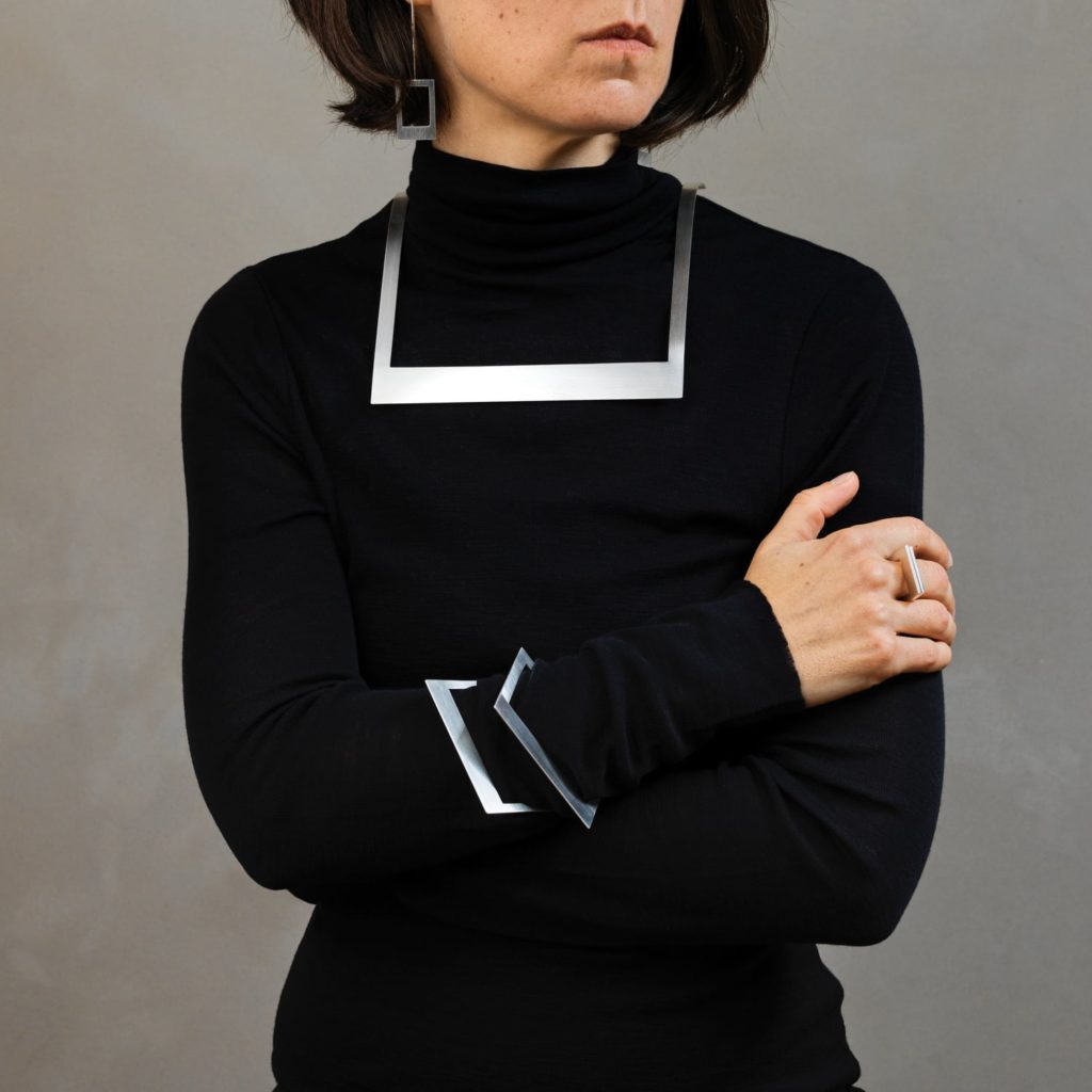 Ce collier rigide est issu de la collection « Instantanés », il met en valeur la personne au coeur même de la représentation graphique de l’instantané. Cette pièce monumentale est coupée en seule pièce dans la masse. Ce bijou apporte beaucoup de modernité par son design contemporain. Ouvert au milieu dos et légèrement courbé pour épouser les formes des épaules, il pourra être porté sur un joli décolleté ou sur un col roulé. Ce collier sera plaisant à travers les différentes saisons.